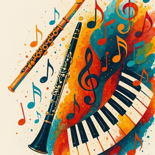 L’association d’instruments à vent et d’un instrument à clavier est une pratique très développée au 19ème siècle dans les sonates baroques. A l’époque, le piano était remplacé par le clavecin et la basse était dévolue au violoncelle. Le piano et la clarinette étant des instruments un peu plus récents, les voir réunis en musique de chambre avec la flûte n’est pas si fréquent que cela. Pourtant, le timbre chaud et boisé de la clarinette se marie parfaitement avec le caractère bucolique et enjôleur de la flûte, l’harmonie et les basses étant assurées par le piano.